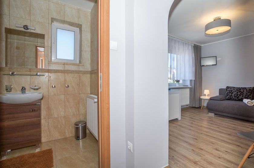 Pokój posiada 2-osobową rozkładaną sofę. Pokój ma powierzchnię 16 m2.